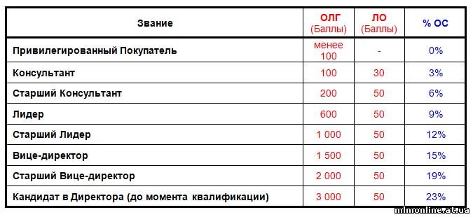 Таблица 1. Звания Консультантов, условия получения и размер Объемной Скидки